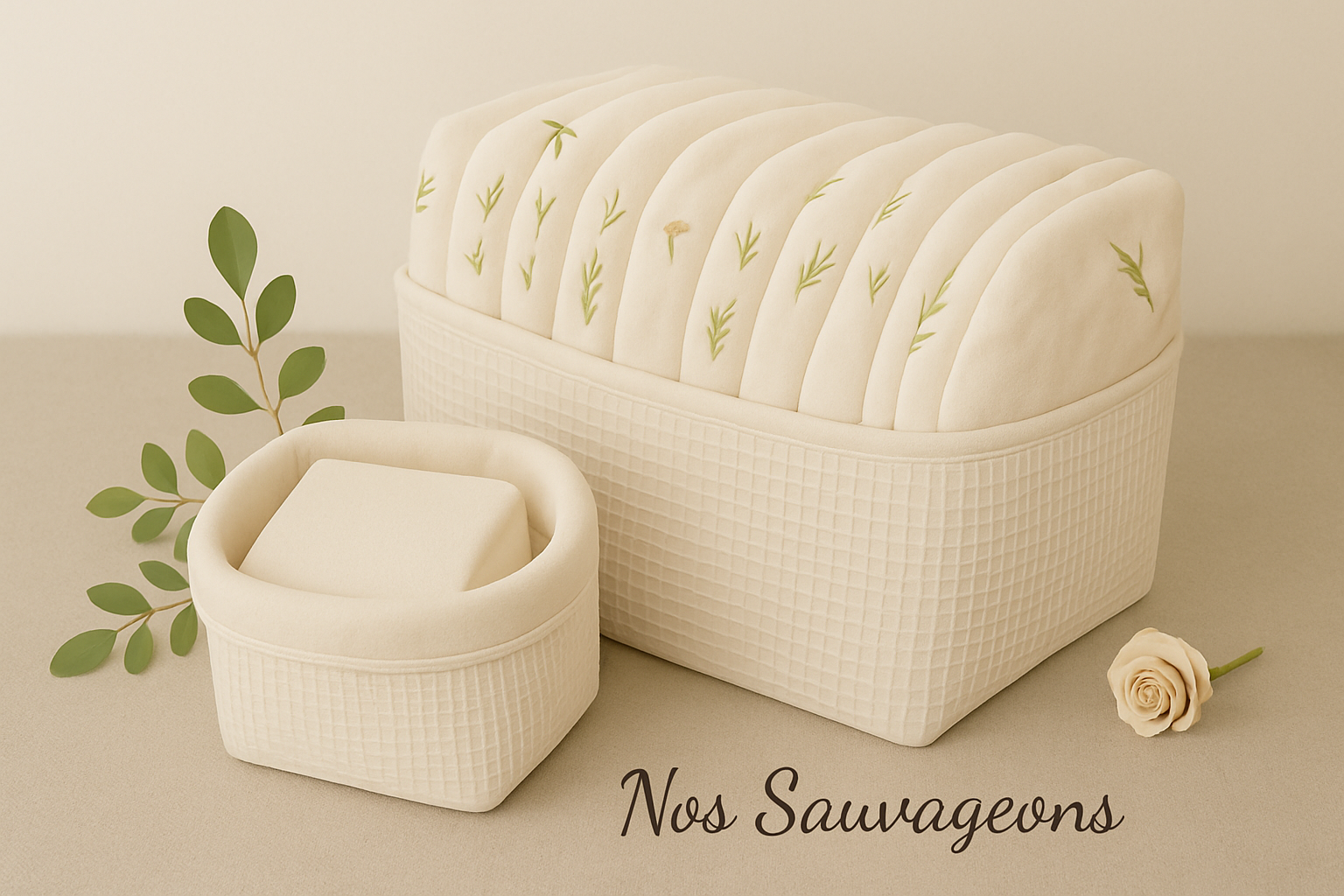 Découvrez notre duo de panières, pensées pour apporter organisation, douceur et esthétique à votre espace de change.
